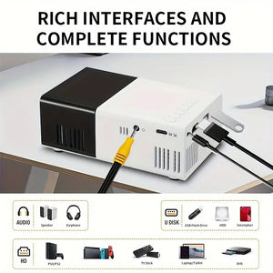 Transformez votre expérience de visionnage avec ce mini projecteur LED compact, idéal pour la maison ou le bureau. Compatible avec les téléphones mobiles et de multiples appareils, il diffuse des vidéos en Full HD 1080P avec une clarté impressionnante.