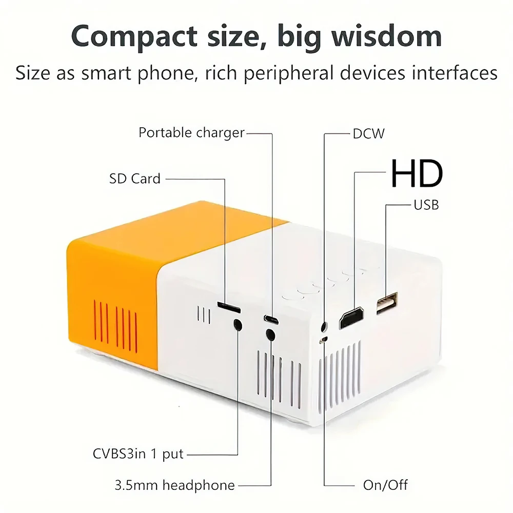 LED Mini Wired Mobile Phone Projector – Support 1080P Full HD Video Playback